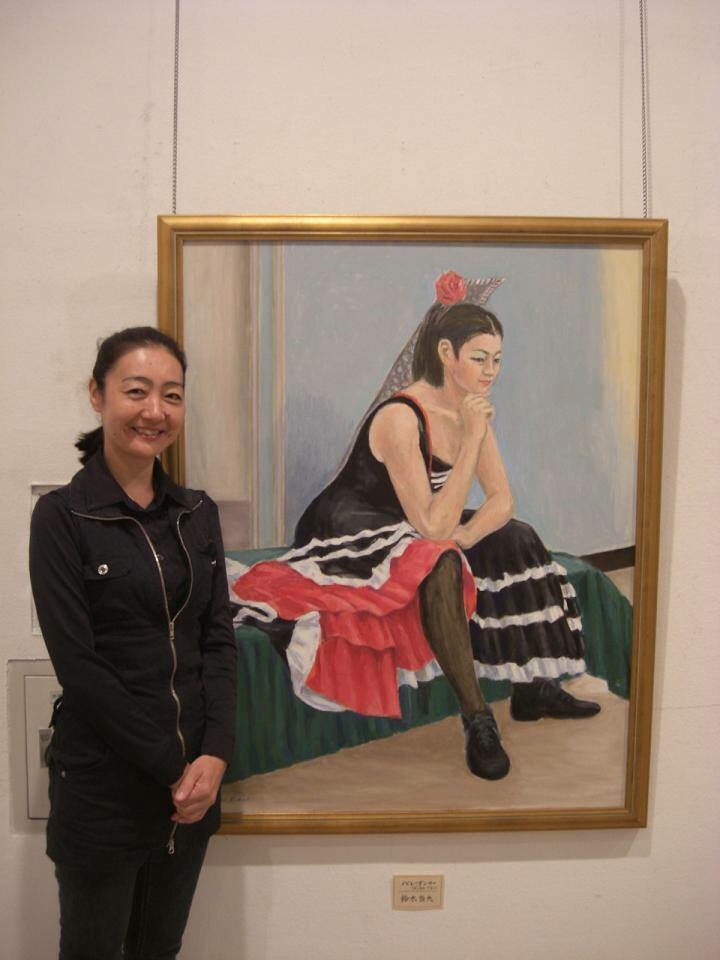 鈴木崇夫先生の個展  私がモデルになった絵3枚とも私ですが、やはり真ん中の赤の衣装が目を引きます。絵のモデルとしては合っているのかも知れません(((o(*゚▽゚*)o)))♡