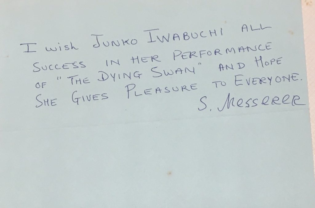 「瀕死の白鳥物語3」には、メッセル先生が話して下さったことや、その姪のマイヤ・プリセツカヤさん、アンナ・パブロワさんについて書こうと思う。メッセレル先生に出会い、カードにメッセージを書いて頂いたことも懐かしい思い出です。