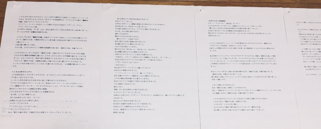 メッセレル先生からプリセツカヤさんや当時のロシアについて学び、私はメッセレル先生に振り付けして頂いた「瀕死の白鳥」を10年間踊り続けることができた事に今も感謝しています。
