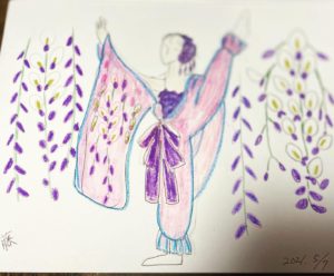 旧金沢公会堂で踊ったバレエ藤娘の絵 ( 鈴木宗夫先生)