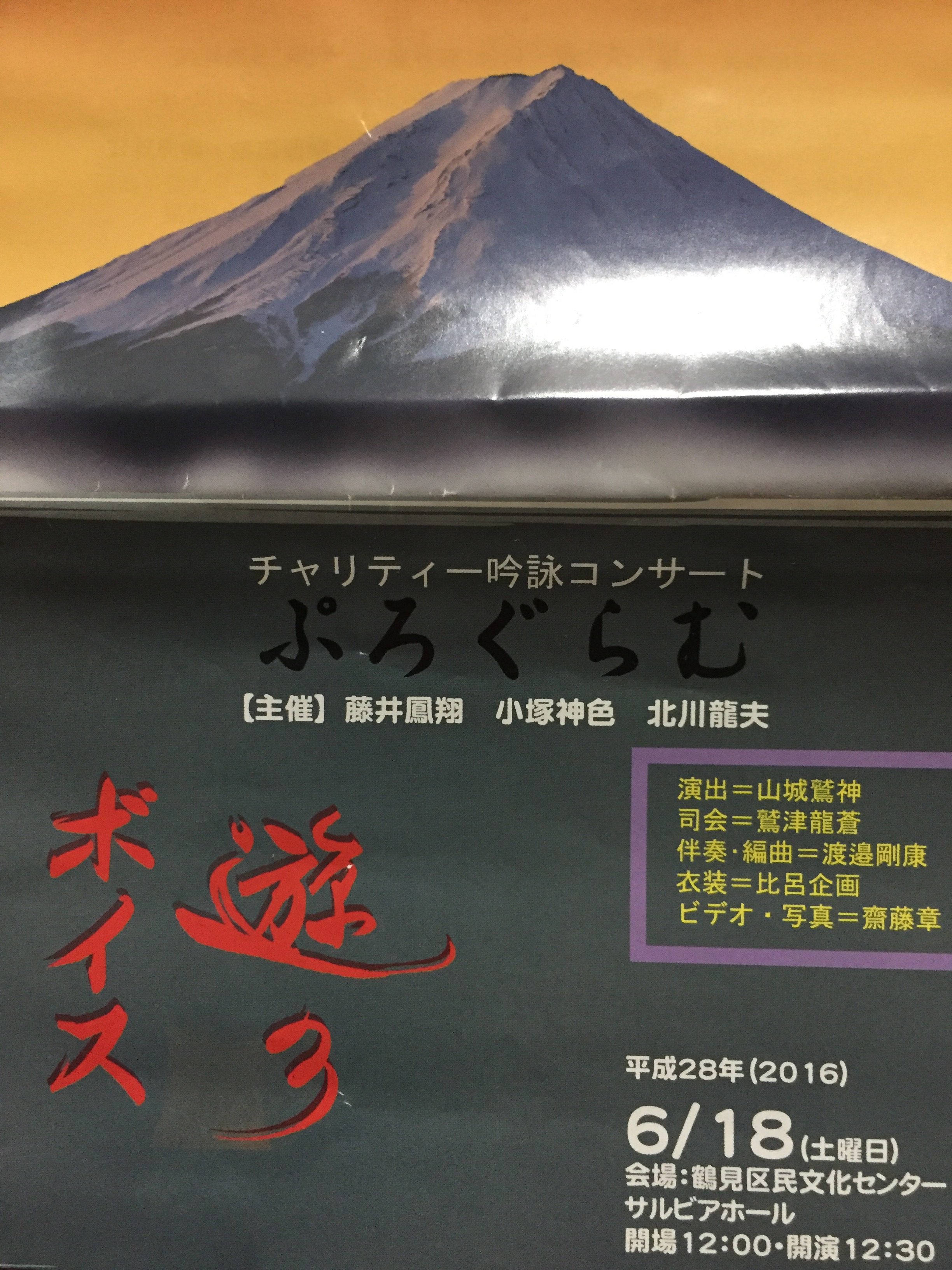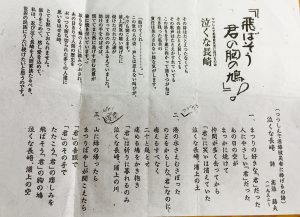2015年から出演している 詩吟コンサート ボイス遊3 からの依頼で「泣くな長崎」と言う曲で踊ってほしい。歌詞の内容の用紙を頂きました。