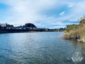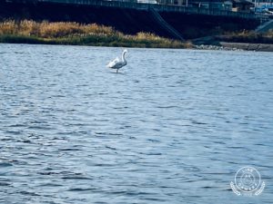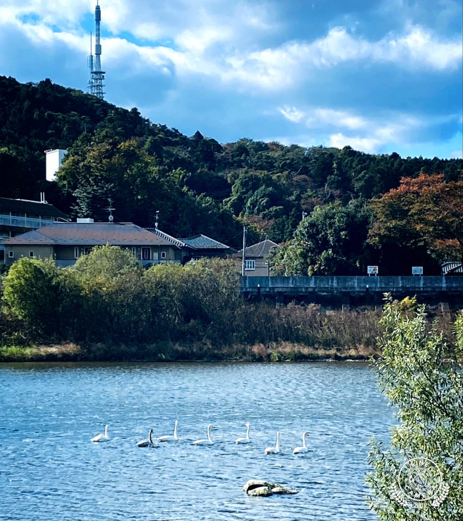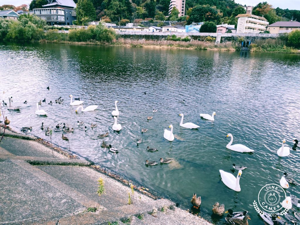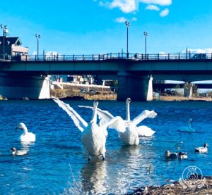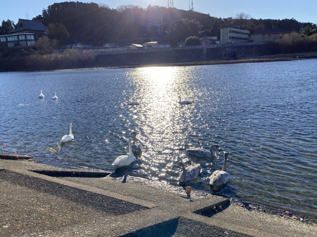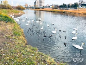 愛宕橋から広瀬橋のあたりにいる白鳥たち