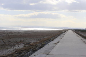 広瀬川下流にいる白鳥と下流から海に続く道にあるものは東日本大震災の傷跡