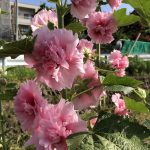 仙台市青葉区八幡4丁目付近の四谷用水に咲くタチアオイ