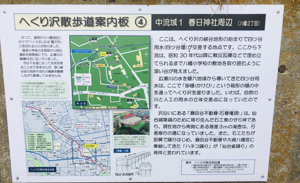 四谷用水本流跡は私の住む仙台市青葉区八幡町の近所にあります。