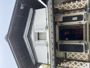 また、門扉は移設時に新造されたものであり、昭和46年の改修では鯱がのせられました。留蓋には波うさぎがのっています。